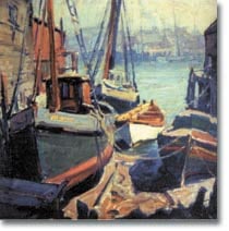 All of the Gruppés at one time or another worked in Emile's Rocky Neck studio - now The Gruppé Gallery. Emile Gruppé had the distinction of being not only an accomplished artist but a dedicated teacher. He ran the Gloucester School of Painting from 1940 until 1970 where over 7,000 painters studied and attended his vibrant demonstrations. Emile is remembered by many artists of Cape Ann for his flamboyant personality and inspirational teaching style.